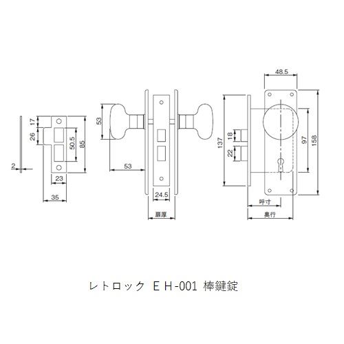 レトロック 棒鍵錠 EH-001 BS63/33-40