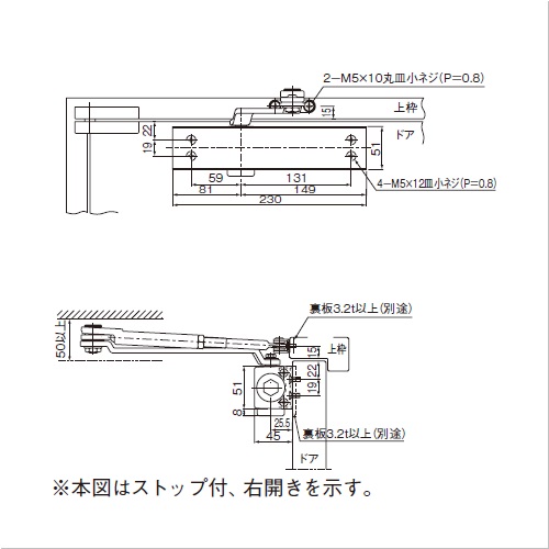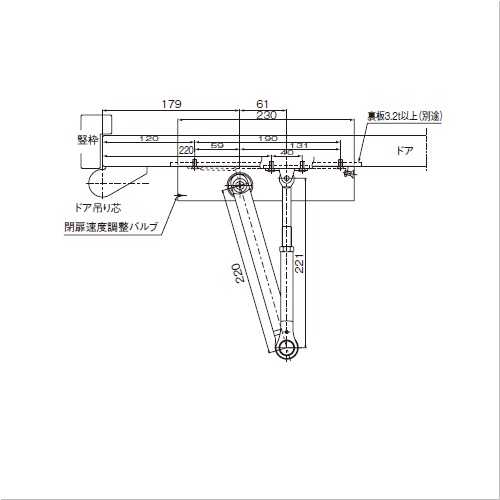 シャープなデザインでコンパクト設計。取り付けネジが露出しないので外観がスッキリします。 ストップ角度は70°〜 120°までの任意の角度に設定可能です。 [適応ドア寸法]W950mm、H2100mm ●タイプ:スタンダード型 ●ドア重量 kg以下:65 購入に関する注意事項