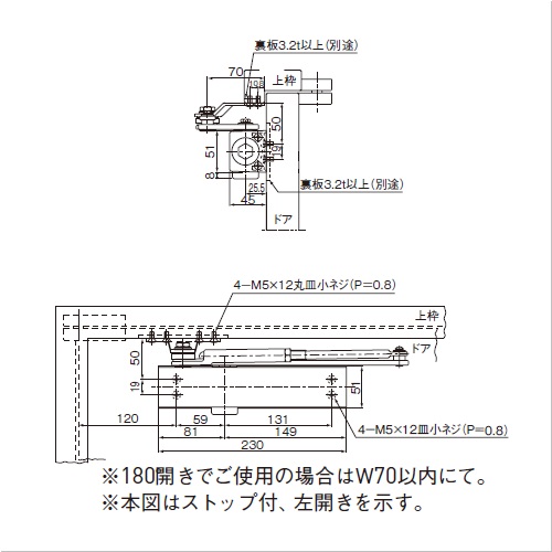 シャープなデザインでコンパクト設計。取り付けネジが露出しないので外観がスッキリします。 [適応ドア寸法]W950mm、H2100mm ●タイプ:パラレル型 ●ドア重量 kg以下:65 購入に関する注意事項