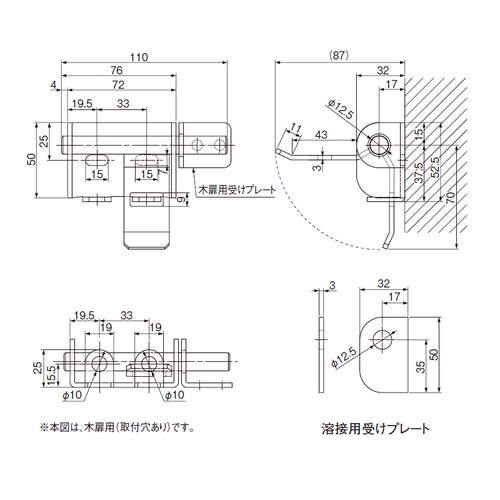 [サイズ]表記による[本体重量]320g [材質]SUS304 [仕上]電解研磨 購入に関する注意事項 特長 ・扉の止め具としてご使用いただけます。 ・南京錠を掛けることができます。 ・取付穴なしの溶接用と取付穴があいている木扉などに取付けられるタイプがございます。 ご注意 取付け用ネジは付属しておりません。