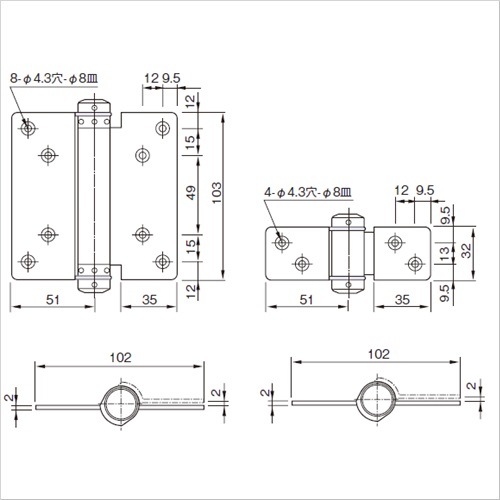 [本体重量]499g[付属品]SUS十字穴付皿木ネジ 3.8×25:12本 [材質]SUS304・ZDC・真鍮・他 [仕上]ヘアーライン [耐荷重]15kgf 購入に関する注意事項 特長 ・止めピンの位置調整により、開放式または自閉式にすることができます。 ・新機構を採用しており、本体を分解してスプリングを交換する必要がありません。 ・常にスプリングが正しい働きをする構造です。 ・トイレの扉にご使用いただけます。 ・スプリング入りのヒンジにより、自動的に扉を閉めることができます。 ・内開き、外開き、いずれにもご使用いただけます。 ご注意 ・ガラス入りドアには、ご使用にならないでください。