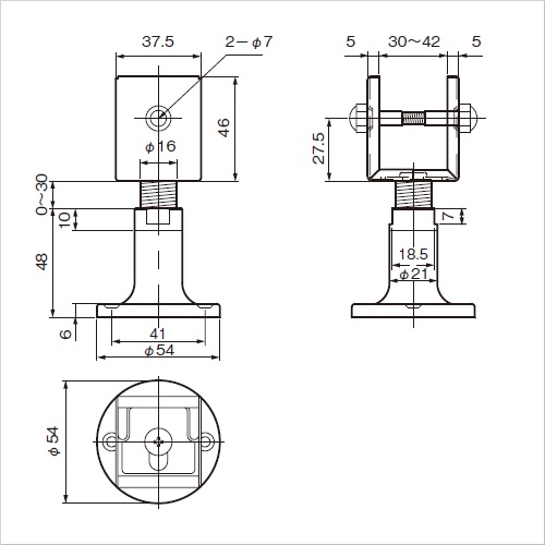 トイレスクリーンの足元支持にご使用いただけます。足元の高さを48〜78mmに調整できます。 [サイズ]表記による [本体重量]180g [付属品]SUS十字穴付皿木ネジ 3.5×25:2本 真鍮製調整ボルト+化粧ナット :1本 [材質]SUS304 [仕上]ヘアーライン ●扉厚:30〜42 購入に関する注意事項