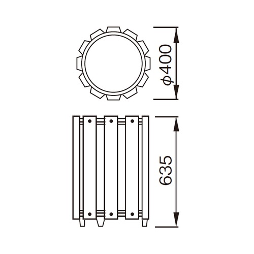 定番デザインの屋外用大容量型くずいれです。 [材質]天然木・スチール [仕上げ]メラミン焼付け [サイズ]径φ400(φ350)、高さ635(505)mm [重量]6kg [入数]1台 購入に関する注意事項 ご注意 ・納期:ご確認ください。