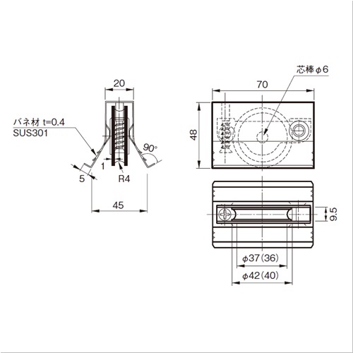 テラス、浴室引戸、窓、建具用などにご使用いただけます。 [サイズ]70x45x48mm [本体重量]90g [材質]外枠:SUS301 内枠:SUS304 車:ジュラコン(ベアリング入) 芯棒:SUS304 [耐荷重](2個あたり):30kgf 購入に関する注意事項 ※代表画像を表示しています。 ご注意 車の巾 SUS 9.5、ジュラコン 9