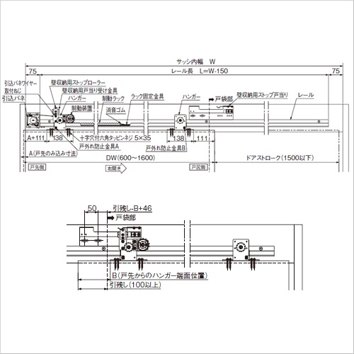 エースクローザー 水平式 AN-CWKS60V-22 壁収納タイプ ガイドレール付 DW600〜1200以下 扉質量10〜60kg