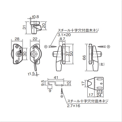 引き戸用の内鍵です。 [本体重量]51.5g [材質]SUS304 【ご注意】アルミ建具用のクレセントもございますので、お問い合わせください。サッシメーカーと左右勝手が異なる場合がありますのでご注意ください。 購入に関する注意事項