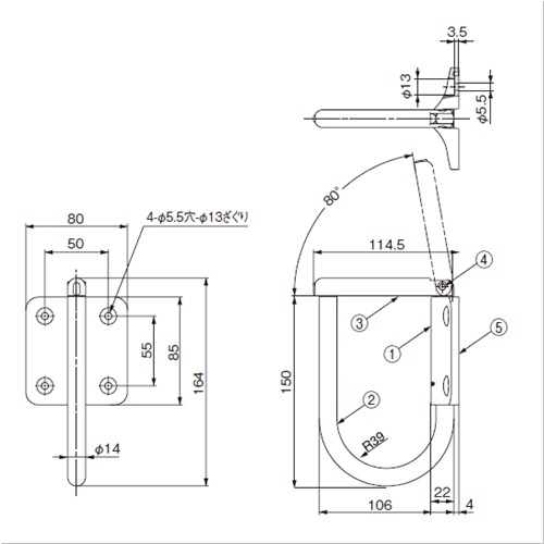 ミニグレビティーヒンジ 90゜ストップ ステンレス製