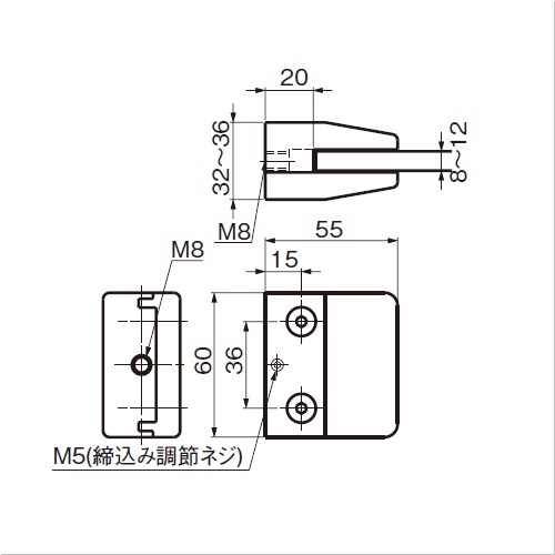[サイズ]表記による[本体重量]325g [材質]亜鉛合金(ZDC) [仕上]ダルクロムめっき [適応ガラス厚]8, 10, 12 [推奨ねじ]M8六角穴付ボルト(ねじは付属しておりません) 購入に関する注意事項