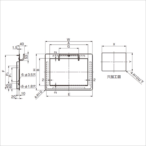 [サイズ]A:310、B:220、W:384、H:294、E:364、F:274、G:160、P1:112、P2:142、X:365、Y:275[材質]SUS304 [仕上]ヘアーライン [質量]2200g 購入に関する注意事項 特長 ・ハンドルを押し下げて扉を開ける、操作性に優れた屑入れ投入口です。 ・従来品のように、手を扉に挟まれてしまう事故を軽減できます。 ・ステンレス鋼製なのでサビに強く、水まわりでもご利用いただけます。