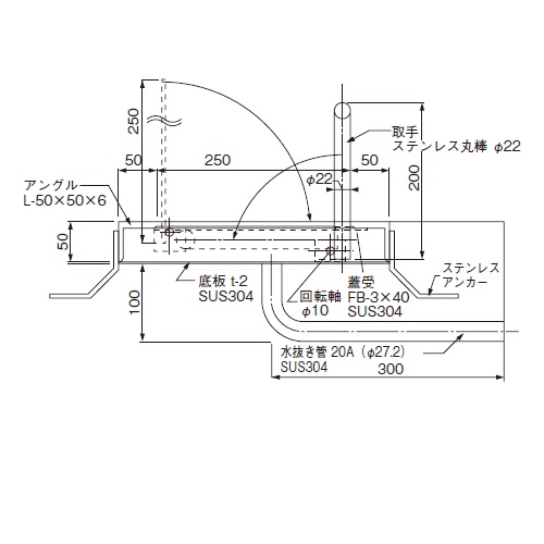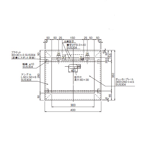 [サイズ]400x350x50mm[本体重量]16700g [材質]SUS304 [仕上]アングル:ヘアーライン 丸棒:ピーリング 【ご注意】日本下水道事業団A-01-1該当品です。運搬諸経費は別途お問い合わせください。納期:受注生産となります。 購入に関する注意事項