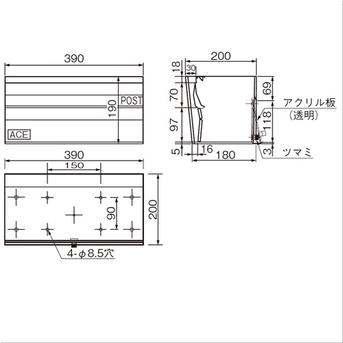 ブロック1個の大きさに合わせてありますので、ブロック規格400巾の1個分に納まります。 [サイズ]表記による [本体重量]2.2kg [材質]SUS304 [仕上]ヘアーライン 購入に関する注意事項 ご注意 ・防水型ではありませんので強い風雨や諸条件によって雨水等が浸入することがありますのでご注意願います。 ・既存在庫なくなり次第、「POST」の文字が印刷からシールへ変更になります。確認が必要な方は事前に営業担当までご確認ください。