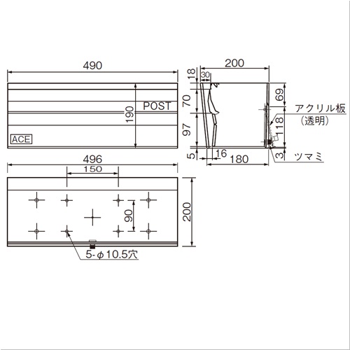 ブロック1個の大きさに合わせてありますので、ブロック規格500巾の1個分に納まります。 [サイズ]表記による [本体重量]2.85kg [材質]SUS304 [仕上]ヘアーライン 購入に関する注意事項 ご注意 ・防水型ではありませんので強い風雨や諸条件によって雨水等が浸入することがありますのでご注意願います。 ・既存在庫なくなり次第、「POST」の文字が印刷からシールへ変更になります。確認が必要な方は事前に営業担当までご確認ください。