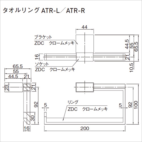 トイレ、洗面所のサニタリーでご使用いただけます。 [サイズ]W200×D65.5 [本体重量]520g [付属品]SUS十字穴付ナベタッピンネジ 4×30:2本 SUS十字穴付ナベ小ネジ 4×10:2本 SUS十字穴付皿小ネジ 4×8:1本 [材質]ZDC [仕上]クロームメッキ 購入に関する注意事項 【勝手】左勝手 ご注意 屋外・浴室など湿気の多い所に、設置しないでください。下地を必ず入れてください。タオルリングは、左勝手(L)と右勝手(R)がございます。