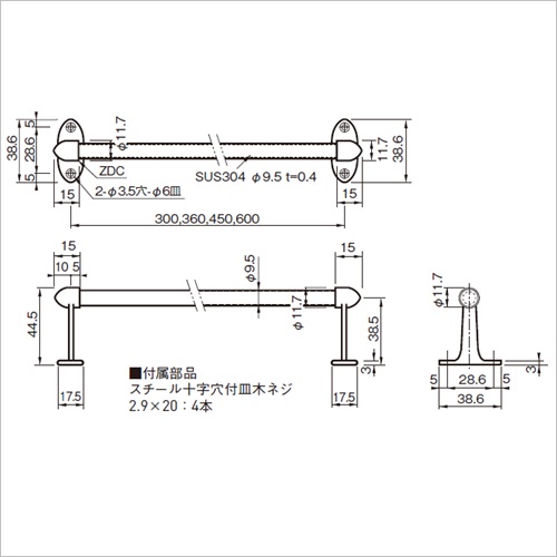 タオルバー 9.5丸X300