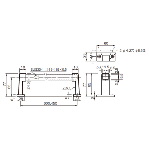 タオルバー 19角X600