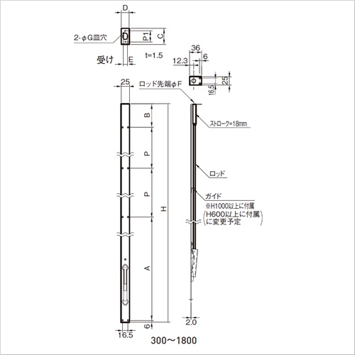 高さのある扉にご使用いただけます。使用例として、車椅子の方でも使用しやすい高さに設置することができ便利です。 [サイズ]H:298mm、A:223.3mm、B:70mm、C:40mm、D:20.5mm、E:10.8mm、F:10mm、G:3.5mm、P1:31mm [本体重量]202g [付属品]SUS 十字穴付皿木ネジ 3.1×20:8本 [材質]SUS304 [仕上]ヘアーライン 【ご注意】特注可能です。お問い合わせください。GBメッキ仕上げも可能です。(サイズ150〜1000のみ) 購入に関する注意事項 備考 代表画像を表示しています。
