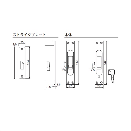 ・片面からだけの施錠・解錠タイプです。・施錠時にキーを回し解錠できなくなります。(簡易錠付) ・建具チリ寸法を3.0〜4.2mm確保してください。 [色]シルバー [品番/呼称]AS2733SV [サイズ]表記による [重量]400g [材質]ZDC [ご注意] ・簡易錠付は、ツマミがグレー(従来)色です。(写真左) ・勝手違いがあります、右前タイプが標準です。 ・左前使用時は上下逆に取付けてください。 ・扉加工時には、必ず実物でご確認ください。 購入に関する注意事項