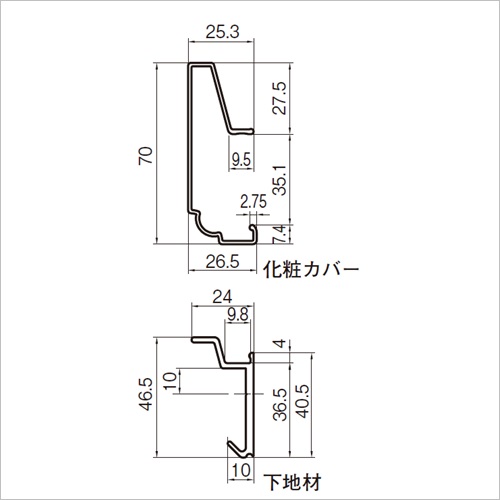 ・洋間などで額やハンガーを取付ける壁掛けがない場合に、簡単に取付けられるアルミ製の長押です。・釘(ビス)穴を隠す、下地材の上から化粧カバーを嵌めるだけのタイプです。 [サイズ]H70mm、D26.5mm、L4000mm [本体重量]3.7kg [仕上]アルマイトホワイト [材質]アルミ 【ご注意】 ・任意の長さに切断可能です。小口は処理してくだい。 ・商品の下地材は300ピッチを目安に穴をあけ、ビス・アンカーなどで固定してください。 ・端部キャップが1セット(左右)付属しています。(ビス・アンカーは別途) 購入に関する注意事項 【要別途送料】別途送料が必要な商品です。詳細は営業へお問合せください。