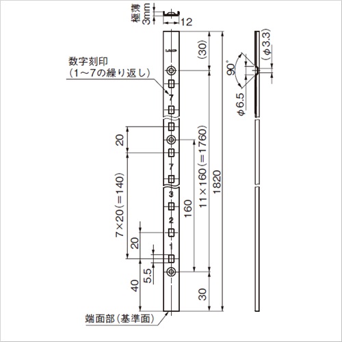 [色]シルバー[サイズ]12mm×22mm [本体重量]224g [材質]SUS430 [仕上]素地 [取付ねじ用穴数]17 [推奨ねじ]十字穴付皿タッピンねじ呼び3、または十字穴付皿木ねじ呼び3.1 購入に関する注意事項 特長 ・厚みが3mmと薄く、棚板との隙間が気になりません。 ・棚板の高さ調整が20mmピッチで行えます。 ・また、棚柱に数字を刻印しているため、高さ調整が簡単にできます。 ・棚受は正面からワンタッチで取付けでき、「カチッ」という音で固定が確認できます。 ご注意 ・取付ネジは、本文ページ下段のアルミ棚柱用AP-SC3をご使用ください。 ・棚柱SPE、棚受キャップ、エンドキャップにブラック色もございます。お問い合わせください。