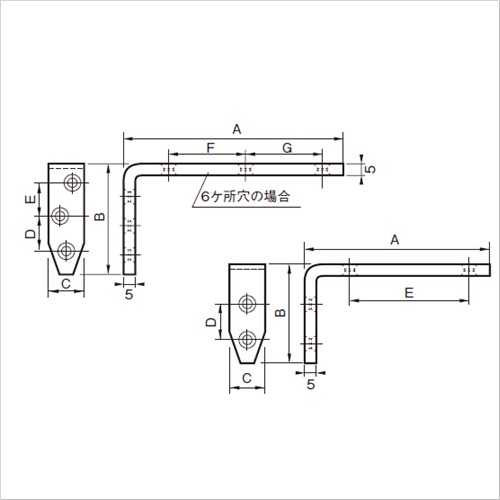 [サイズ]A120mm、B60mm、C16mm、D30mm、E90mm[本体重量]100g [付属品]SUSドリリングタッピンネジ 4.5×25:2本 4.5×16:2本 [材質]SUS304 [仕上]ヘアーライン・電解研磨 [耐荷重(1本あたり)]20kgf 購入に関する注意事項 特長 両面皿取りなので上下取付けが自在です。 棚板下からのコーナー補強にご使用ください。 ご注意 両面皿取りです。
