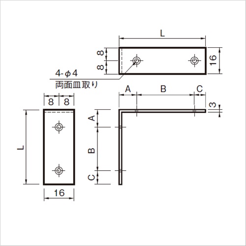 [サイズ]A20mm、B20mm、C10mm、L50mm[本体重量]35g [材質]SUS304 [仕上]ヘアーライン ●耐荷重(1本あたり):25kgf ●使用木ネジ(別途):3.5×20 【ご注意】両面皿取りです。運搬諸経費は別途お問い合わせください。 購入に関する注意事項