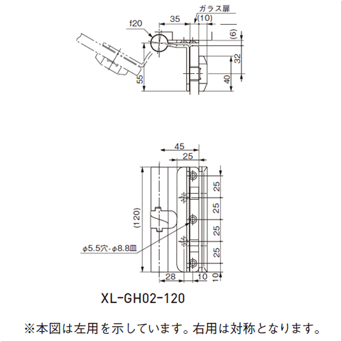 ガラスドア用 グラビティ丁番 XL-GH02-120R