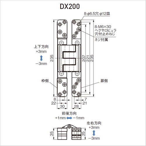 三次元調整機能付隠し丁番 DX200