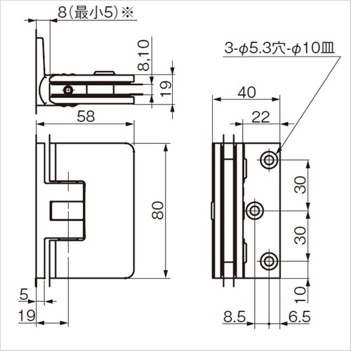ガラスドア用自由丁番 壁取付タイプ(片座) M8501R