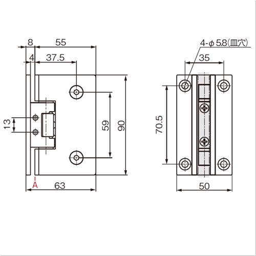 戸先調整ガラスヒンジ 壁取付用 OT-B450-SUS-MST 鏡面