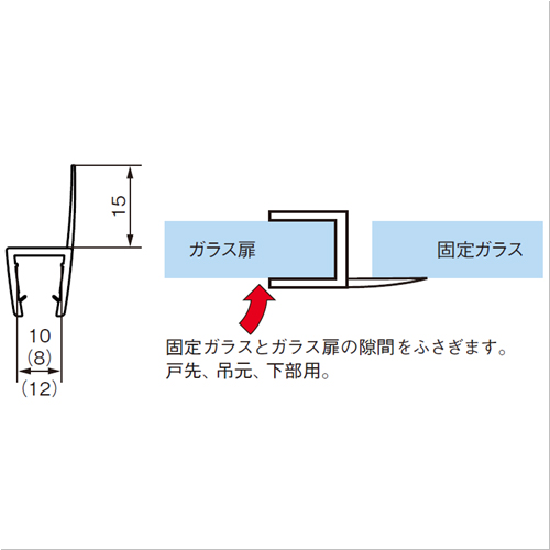 ・シャワールームのガラス扉のチリをふさぎ、水の飛び散りを抑えるシールです。・材質は、硬質塩化ビニール(120°)+軟質塩化ビニール(60°〜70°)です。 [材質]硬質塩ビ・軟質塩ビ [サイズ]2500mm [備考]片開き扉用 [入数]10 [対応ガラス板厚10mmの重量]150g 購入に関する注意事項 入数単位で受注承ります。 ブラックもあります。お問い合わせください。 ご注意 ・図面中の( )内寸法は、対応ガラス板厚8mmのものを示す。 ・ご使用箇所の寸法に合わせ、カットしてください。 ・OT-H611N・620Nには対応ガラス板厚12mm用もございます。 ・生産工程上、記載の仕様と異なる場合がございます。現物にてご確認ください。