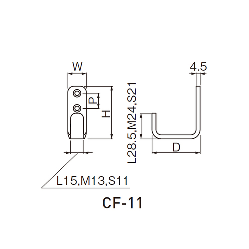 CF-11 L形フック L Nブラック