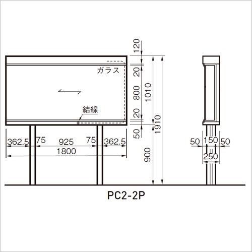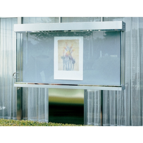 屋外掲示板 大型タイプ(照明付き2本脚) [サイズ]1910×1800 [重量]118kg [材質]SUS304 [仕上げ]ヘアーライン ●本体:SUS304 t=1.5 ヘアーライン ●掲示板:耐水ベニヤ 樹脂シート貼り(色:ライトグレー) ●ガラス戸:正面 t=5・側面 t=4強化ガラス 左右どちらからでも引き出し可能です。 ●開閉機構:オリジナル錠 ●照明:蛍光灯 40W1本 ●脚:SUS304 t=1.5 ヘアーライン W75×D150 2本 24kg、スチールアングル L-50×50×4-300 2本 ●掲示スペース:H803×W1704 購入に関する注意事項 商品説明 ・一枚ガラス戸で見やすく、継目がありません。 ・強化ガラスを使用しているので安全です。 ・側面ガラスで明るく、視界が広いため斜めからでも掲示物がよく見えます。 ・前面からガラス戸を左右に引き出すことにより、楽に掲示することができます。 ご注意 ガラス戸を引くためのサイドスペースが、片側1800mm以上ある場所に設置してください。運搬諸経費は別途お問い合わせください。