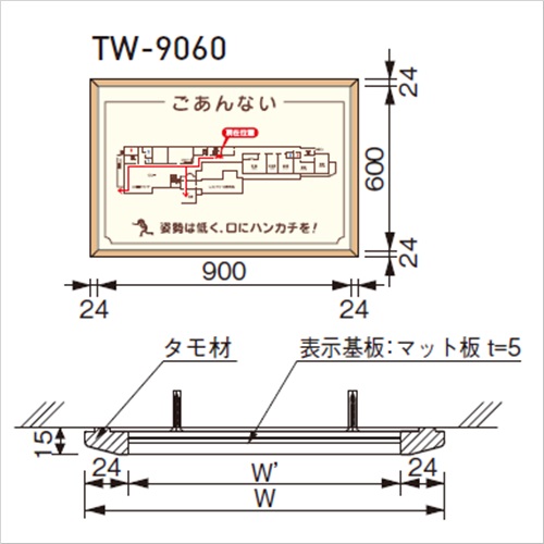 [品番/呼称]TW-9060[サイズ]H649mm、W949mm [重量]5.9kg [材質]表示基板:アクリル板t=5(脱着式) フレーム:タモ材 [備考]UV印刷(VOCが発生しないインク) 購入に関する注意事項 ・デザインをご指定ください。 特長 ・VOC対応商品:木製フレームサインは、有害化学物質含有量の少ない(低ホルムアルデヒド)安全な素材を使用しています。教育施設にも自信を持ってお勧めします。 ご注意 ・納期:ご確認ください。 ・UV印刷は屋内専用です。屋外で使用される場合は、別途ご相談ください。