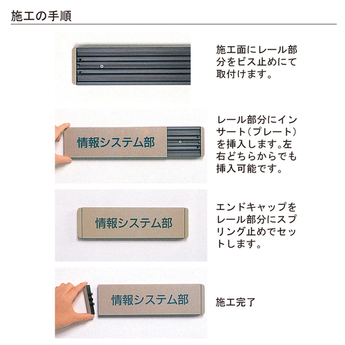 [色]4色の中から(ブラウン、ホワイト、クリーム、グレー)[品番/呼称]SYR-02 [サイズ]H50mm、W250mm、D15mm [重量]0.18kg [材質]パネル:ABS 取付板レ:アルミ 購入に関する注意事項 ご注意 ・案内板タイプもご用意できますので、お問い合わせください。 ・パネル巾は51H、H76、102H、152Hの4サイズあります。 ・パネルの長さは最高2286mmまで可能です。巾と長さの組み合わせは自由にご指示ください。
