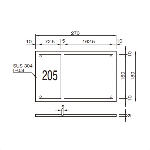 アクリル札は上部より差込式です。 [サイズ]180x270mm [本体重量]1000g [材質]SUS304 [仕上]ヘアーライン 購入に関する注意事項 ご注意 ・防衛庁施設局にてご採用いただいております。 ・氏名、部屋番号は別途となります。 ・部屋番号にはファスカルシールを参照ください。