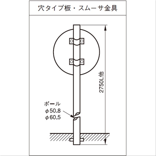 ・消防水利は、消防法施行規則第34条の2、別表1-の4に適合する標識です。・消火栓・防火水そうは消防法第442号通達に適合する標識です。 [品番/呼称]E-1 [サイズ]Φ575mm [重量]1.8kg [材質]電気亜鉛メッキ鋼板 [仕上げ]メラミン焼付 ●支柱の止め方法:スムーサー仕様 購入に関する注意事項 代表画像を表示しています。 ご注意 消火栓・防火水そうは、都・市・町・村で定めています。各定めに適合する標識をお選びください。
