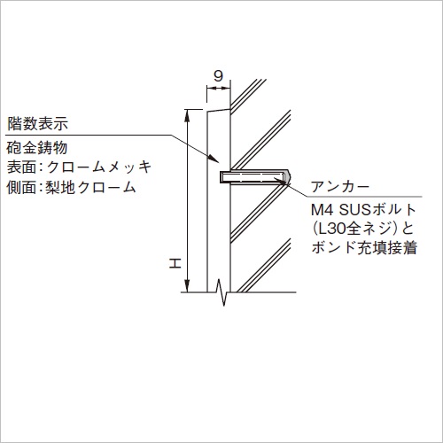 壁付タイプです。 [サイズ]152×114×9mm [本体重量]410g [材質]砲金 [仕上]表面:砲金クローム・側面:砲金クローム 購入に関する注意事項 代表画像です。 ご注意 ・アンカーと接着にて施工します。 ・各数字、英字によりサイズは多少異なります。 ・鋳物製品のため重量は製品毎で多少異なります。