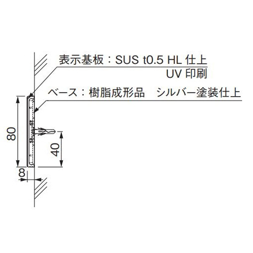 [材質]表示板:SUS304 t=0.5、金具:アルミ[仕上げ]表示板:ヘアーライン、金具:アルマイトシルバー [サイズ]H200、W204mm [備考]UV印刷 [重量]630g 購入に関する注意事項 ・デザインをご指示ください。 ご注意 ・UV印刷は屋内専用です。屋外で使用される場合は、別途ご相談ください。