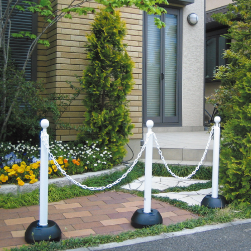 [サイズ]ポール径φ54mm×高さ850mm×台径φ255mm[本体重量]520g [材質]ポリエチレン 購入に関する注意事項 ・チェーンスタンドは、ロット2000本で特注色の対応が可能です。 ・表示シールは、別注で製作可能です。 ・納期:ご確認ください。 特長 ・自宅の車庫付近など、迷惑駐車でお困りの場所に置くだけの便利なチェーンスタンドです。 ・チェーンをひっかけて用いれば、人の誘導や立ち入り禁止の区間指定に使用できます。 ・転倒を防止するため、台の部分に水を入れる事ができます。 (ポリ台満水時:約3.3kg、砂:約4.5kg) ・チェーンアロー(別売)をチェーンスタンドに被せることにより、店舗・工場・イベント会場など屋内外を問わず、簡単に誘導表示ができます。