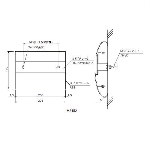 アルミ室名札 MS152-A シルバー