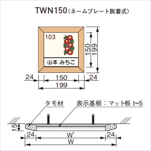 [品番/呼称]TWN-150[サイズ]H199mm、W199mm [重量]380g [材質]表示基板:アクリル板t=5(脱着式) フレーム:タモ材 [備考]UV印刷(VOCが発生しないインク) 購入に関する注意事項 ・デザインをご指定ください。 特長 ・VOC対応商品:木製フレームサインは、有害化学物質含有量の少ない(低ホルムアルデヒド)安全な素材を使用しています。教育施設にも自信を持ってお勧めします。 ご注意 ・納期:ご確認ください。 ・UV印刷は屋内専用です。屋外で使用される場合は、別途ご相談ください。