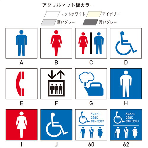 [色]マットホワイト、薄いグレー、アイボリー、濃いグレー[品番/呼称]FKY-150 [サイズ]H151mm、W170mm [重量]260g [材質]表示板:アクリル t=5 金具:SUS304 [仕上げ]ヘアーライン [備考]UV印刷 購入に関する注意事項 ・カラーアクリルをご注文の際は、4色より選びご指示ください。 (マットホワイト・アイボリー・薄いグレー・濃いグレー) ・納期:ご確認ください。 ・表示内容をご指定下さい。 ご注意 ・UV印刷は屋内専用です。屋外で使用される場合は、別途ご相談ください。