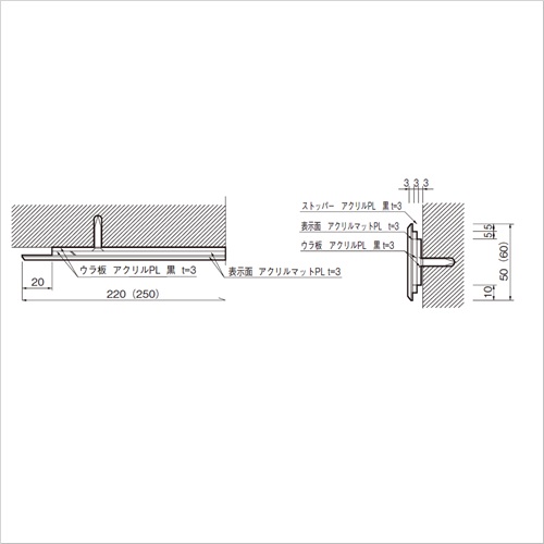 [品番/呼称]PU-02[サイズ]H60mm、W250mm、D9mm [重量]90g [材質]アクリル [仕上げ]アクリルマット 購入に関する注意事項 ・アクリルの色を、5色(ベージュ、アイボリー、薄いグレー、濃いグレー、ブラック)の中からご指示ください。 ・納期:お問い合わせください。