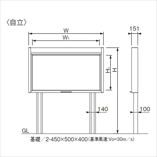 [形式]自立[本体]アルミ押出し形材 クリアー付 [掲示ボード]マグネットボード(ホワイト)3(マグネット8個付) [掲示スペース]A1縦×2枚 [保護板]強化ガラス4mm [錠前]クレセント錠 キー付 [開閉方式]上下スライドタイプ [照明]なし [外寸法]1502×2070.5mm [掲示有効寸法]1402×902mm [重量]80kg [本体色]サンシルバー(SLC) 購入に関する注意事項 ・電気工事は必ず電気工事店にご依頼ください。 ・納期:お問い合わせください。 特長 都市空間に映える高級なスタイル。 バランサー内蔵で開閉がスムーズな、上下スライドタイプです。 ※照明の種類は、お選びいただけます。 ※オプションでソーラー LED(外付タイプ)もお選びいただけます。(別途有料)