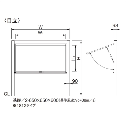 [形式]自立[本体]アルミ押出し形材 クリアー付 [掲示ボード]マグネットボード(ホワイト)(マグネット8個付) [掲示スペース]A1縦×1枚 [保護板]強化ガラス 4mm [錠前]コインロック錠 キー付 [開閉方式]跳ね上げタイプ [照明]LED(自動点滅器付) [本体色]サンシルバー(SLC) [外寸法]1294×1800mm [掲示有効寸法]1093×893mm [重量]33kg 購入に関する注意事項 ・電気工事は必ず電気工事店にご依頼ください。 ・納期:お問い合わせください。 特長 操作性に優れ、掲示面がスッキリしたガススプリングによる跳ね上げタイプです。 ※照明の種類は、お選びいただけます。 ※オプションでソーラー LED(外付タイプ)もお選びいただけます。(別途有料)