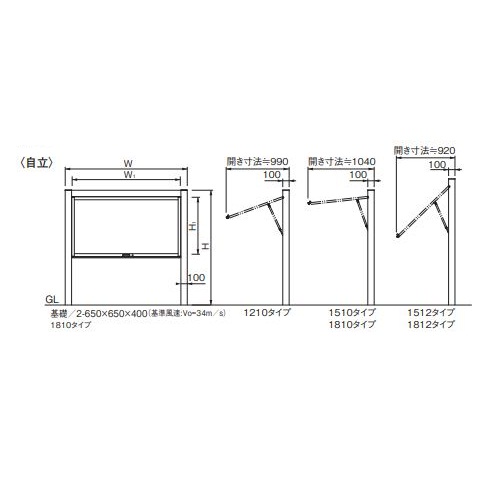 [型式]自立[本体]アルミ押出し形材 クリアー付 [掲示ボード]マグネット(ホワイト)(マグネット8個付) [開閉方法]跳ね上げタイプ [錠前]コインロックミニ キー付 [掲示スペース]A1縦×2枚 [照明]LED照明・自動点滅器付[外寸法]W1660×H1800mm [提示有効寸法]W1:1396×H1:893mm [重量]42kg [保護板]強化ガラス4mm [本体色]ダークブロンズ [支柱色]キャメルベージュ 購入に関する注意事項 電気工事が必要な場合、必ず電気工事店へ依頼してください。 特長 操作性に優れたガススプリングによる跳ね上げタイプで、ナチュラルな木調支柱が手触り優しく視覚にも暖かみを与えます。