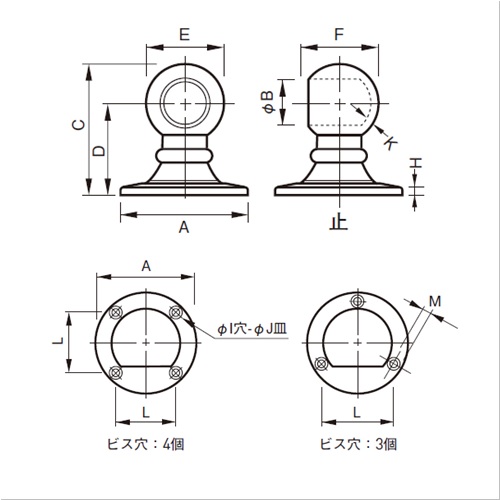 一般手すり、ハンガー等のパイプ支えにご使用できます。 [サイズ]A60.0mm、B32.5mm、C70.0mm、D48.3mm、E43.4mm、F35.0mm、G27.0mm、H5.0mm、I4.3mm、J8.0mm、K2.0mm、M5.7mm [本体重量]162g [付属品]スチール十字穴付皿木ネジ(止・通 共通)3.8×32:4本 [材質]ZDC [仕上]クロームメッキ [耐荷重]100kgf [ビス穴]4 購入に関する注意事項 ※代表を表示しています。 ご注意 梯子受としてはご使用になれません。