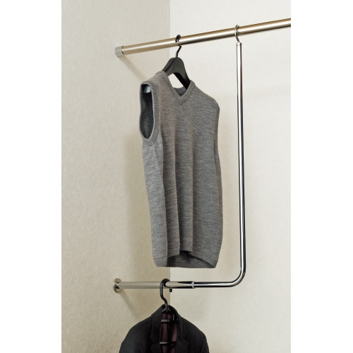 クローゼット内の限られたスペースを有効に利用し、衣服の収納量を増やします。L型伸縮ハンガーパイプを用いることにより、ハンガーパイプを2段にでき、短い衣服をより多く掛けることができます。 縦・横に伸縮するので、衣服の長さやタンスの大きさなど、ご使用になる状況に合せて調節できます。 φ25・φ32のハンガーパイプに対応いたします。 先端のフックは回転するので、さまざまな方向に設置することができます。 [サイズ]H863~1003mm、W380~640mm [本体重量]900g [付属品]SUS+字穴付皿タッピンネジ 4×25:2本 六角レンチ [材質]スチール・SUS304・ナイロン [仕上]クロームメッキ ●耐荷重:20kgf 【ご注意】横方向の長さ調節は設置後も可能ですが、高さの調節はできません。ご使用になる高さに調節してから取付けてください。フック付き丸棒は、縦方向に140mm(20mmピッチで7段階)伸縮可動し、横方向のパイプは260mm伸縮可動します。フック付き丸棒は、付属の六角レンチでしっかり固定させてください。 購入に関する注意事項