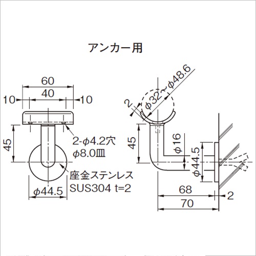 [本体重量]240g[パイプ径]φ32.0mm [付属品]オールアンカー C-1060:1本(アンカー用) [材質]SUS304 [仕上]ヘアーライン 購入に関する注意事項