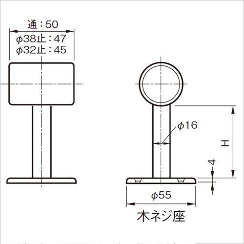 丸受直型 38止 木ネジ 150 (PPTM-38 16.H150 止)